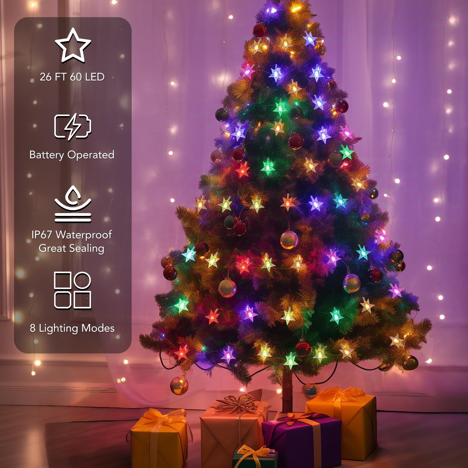 • IP67 WATERPROOF: Our colorful string lights are designed to withstand various weather conditions, including rain, wind, snow, and fog, making them an ideal choice for outdoor & indoor decorations. Whether you’re hosting a party, celebrating Christmas, Halloween, Thanksgiving, or any other special occasion, our Star fairy lights are a perfect addition to your decor.