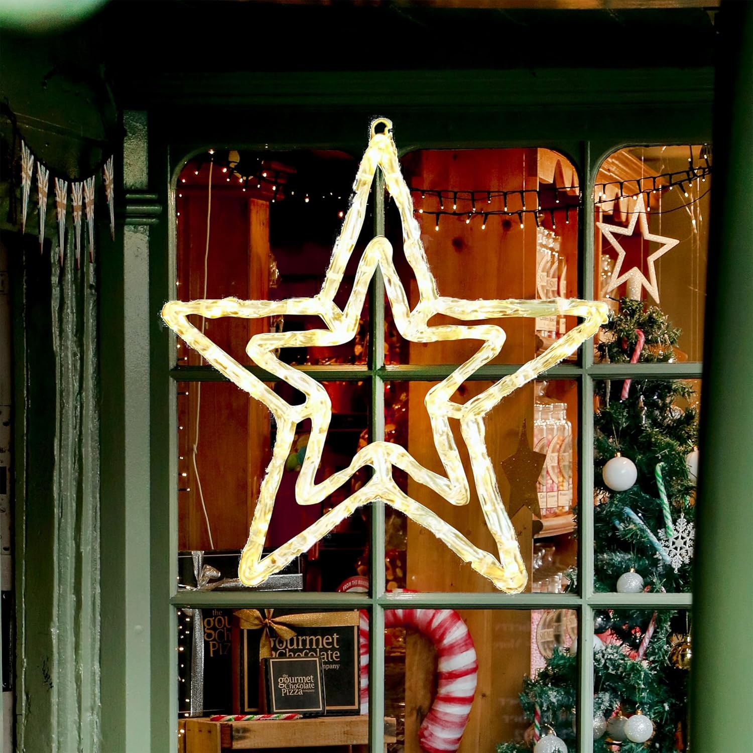 • Powered by just 3 AA batteries, making it easy to use anywhere in your home or garden..Batteries are NOT included..IP44 waterproof rating makes it reliable for both indoor and outdoor use..Perfect for winter holidays and Christmas.