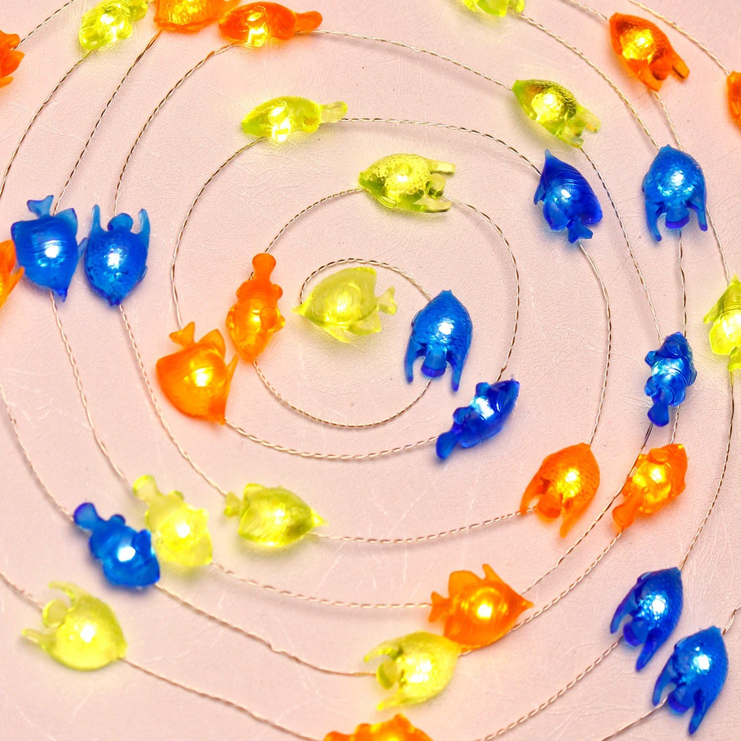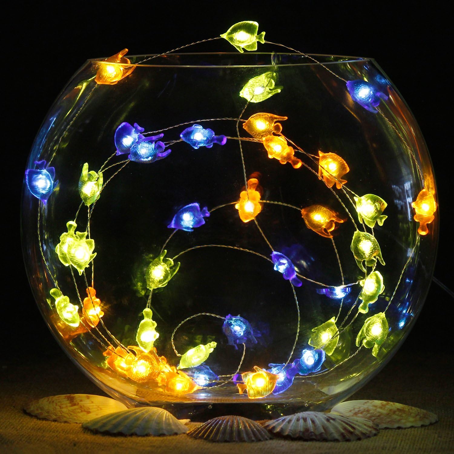 - 【Unique Ocean Themed Decor lights】Design a Beach-Themed Room with this unique small fish starry twinkle lights, great display for indoor and covered outdoor, for tropical theme party, Sea related decorations, fish turtle tank, aquarium, beach wedding, Christmas, New Year and many other celebration occasions.