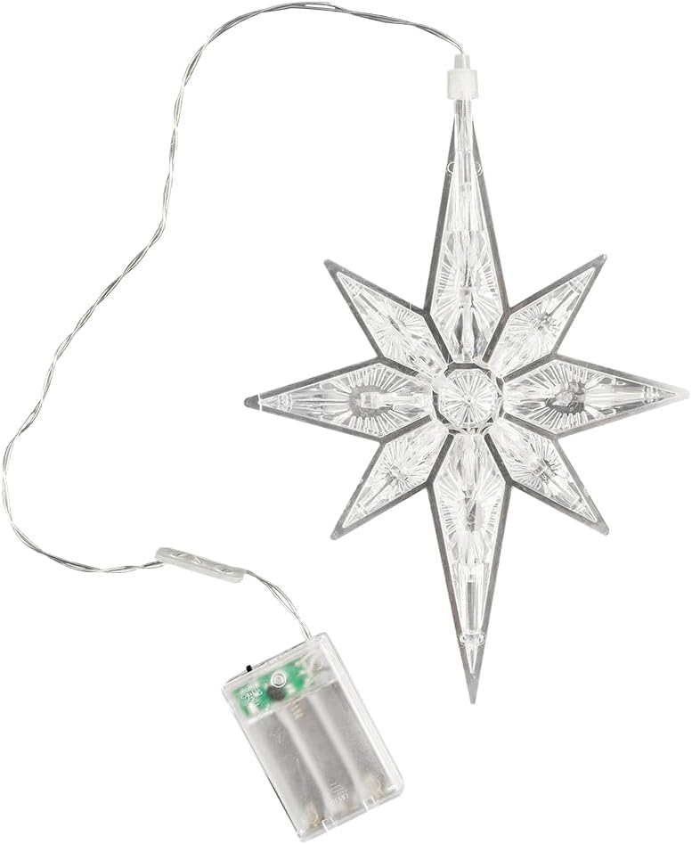 - The transparent star is illuminated by 11 bulbs in warm white. The cable from the battery compartment to the star has a length of approximately 1 m.