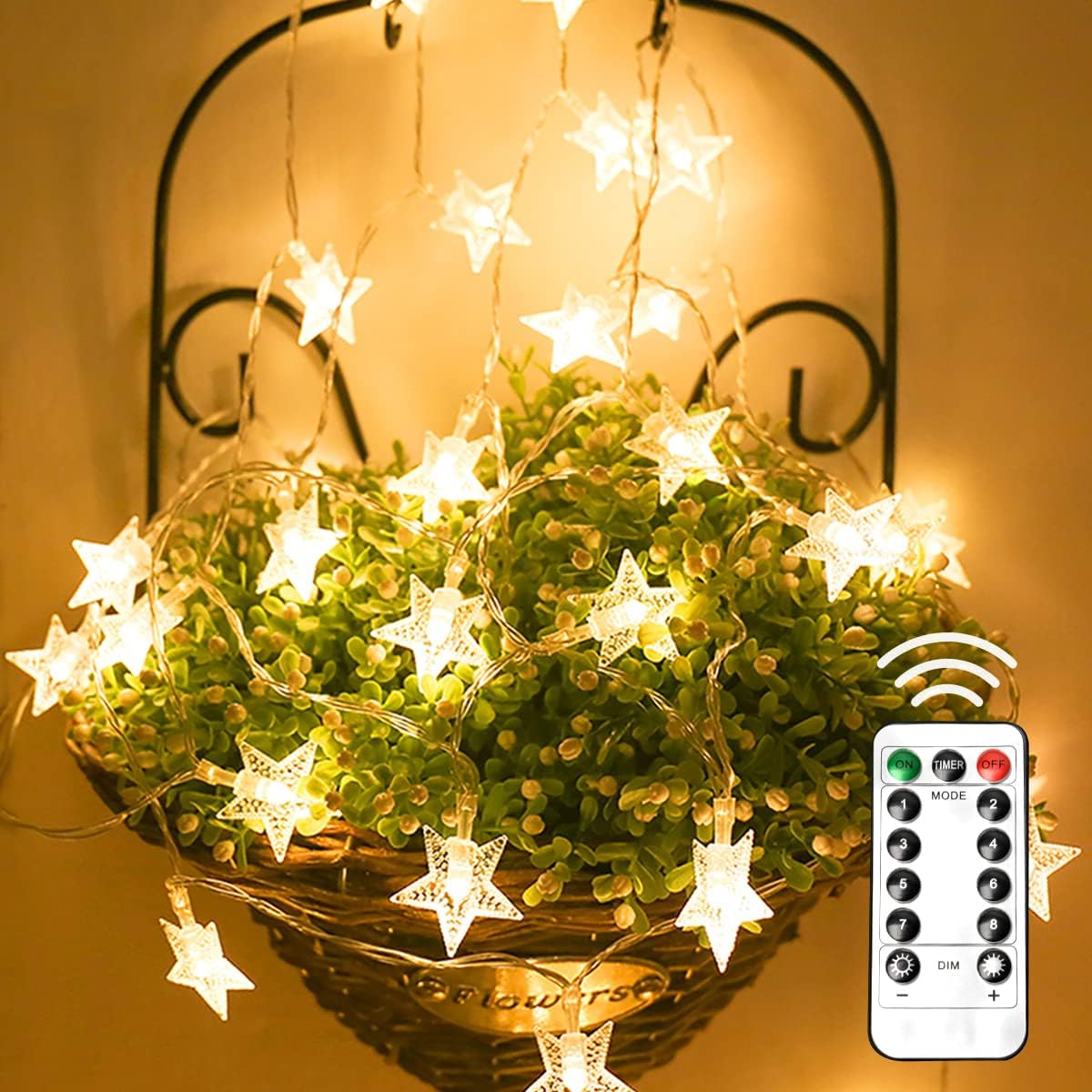 String Lights 20 Ft, 8 Modes Star Waterproof Outdoor String Lights Starry, Battery Operated with Remote Twinkle Lights for Decoration Wedding Home Parties Shop Christmas Holiday. (Warm White)